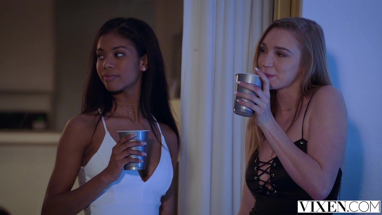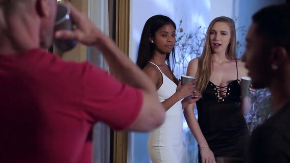 После вечеринки с подругами молодая студентка немного перебрала алкоголя и мало что помнила. А наутро сучка проснулась рядом с горячим мужиком. В этот момент юная негритянка делала факеру утренний отсос. И на предложение принять участие в утреннем сексе подруга ответила да. Она присела рядом с негритянкой на колени и помогла с минетом большого члена. Девушки по очереди сделали шикарный отсос и европейка запрыгнула на член мужика в позу наездницы. Начала приседать к нему спиной и эротично покачивать большими сиськами в разные стороны. А потом уступила место чернокожей напарнице и она тоже продемонстрировала, что так же круто умеет скакать на большом члене. Оргия быстро набирала обороты разврата, а сучки оказывались на члене по очереди и очень громко стонали на всю комнату, выдавая своё заведённое состояние. Дальше лысый поставил блондинку рачком и закатил ей в дырку сзади. А негритянку откинул на лопатки и стал отжиматься от её тела до тех пор, пока не кончил на грудь.