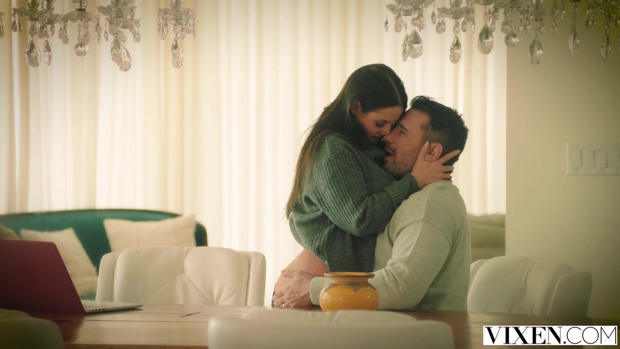 Писательница сильно скучает за своим мужем, который уехал в командировку. Каждая комната напоминает женщине о любимом, и она начинает часто о нём фантазировать и вспоминать, как раньше занималась сексом. Со свободными отношениями она могла бы легко найти член для своей дырочки на стороне, но брюнетка ждёт мужа дома. И, когда он возвращается, сисястая красотка устраивает ему жаркий приём и лично доказывает в постели, как сильно соскучилась. Встречает в нижнем белье, вешается на шею и целует. А любимый становится на колени и языком теребит пилотку грудастой жены. Хватает обеими рукам за сиськи и жадно облизывает каждый торчащий сосок. Даёт отсосать большой член и сразу начинает трахать. Брюнетка принимает в дырку большой член в позе сбоку. Становится в позу раком и супруг на всей скорости прокачивает киску сзади. Подсаживает на головку в позу наездницы. И это последняя поза их страстного секса. После чего брюнетка, отсосав всю сперму, ложится рядом и нежно обнимает.