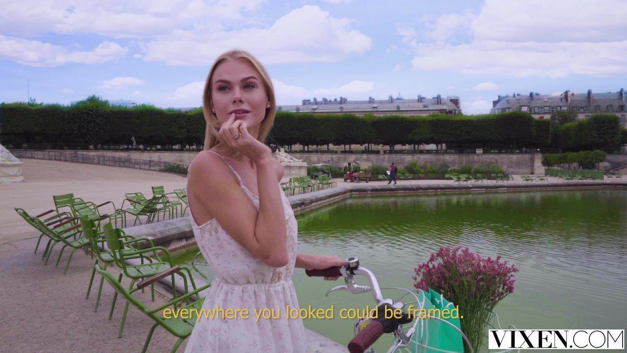 Стажируясь в Парижском музее, блондинка знакомится с молодым художником и сразу влюбляется. Парень отвечает на знаки внимания только перед её отъездом, но она все равно решает заняться с ним сексом. После ночи любви на фоне эйфелевой башни, проснувшись в постели в романтичном настроении, подруга сразу бросается губами к члену и нежно его отсасывает. Дрочит большой мужской орган рукой, забирается на него верхом и начинает утренний секс с вагинальных проникновений. А потом становится рачком, позволяет вылизать свою промежность и не возражает против того, что парень сам выберет дырку для продолжения. Красавчик берёт блондинку за талию, и насаживает на головку члена её попку, и парочка занимается анальным сексом. Парень дрючит ее в попку раком и помогает присесть на залупу верхом. Девушка разворачивается на члене к парню лицом, после чего сама ложится под него с раздвинутыми ногами. Сразу после анала парень вынимает и кончает на лицо.