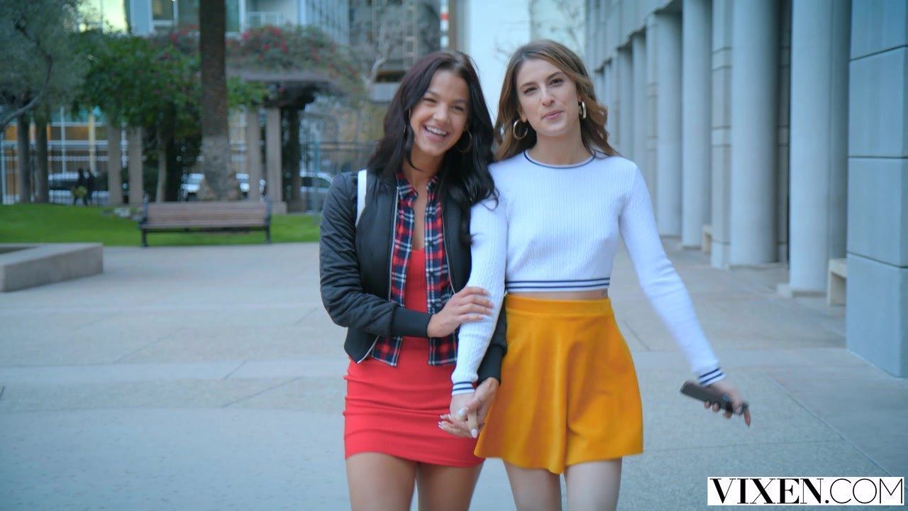 Две девушки влюбились в симпатичного студента из колледжа, будущего режиссёра, и очень сильно захотели устроить с ним секс. Была только одна большая проблема на пути к этому. Парень встречался с девушкой. Только горячих подружек это не остановило и они придумали хитрый план, как соблазнить парня. Брюнетка и блондинка попросили его снять с ними фильм для взрослых, где они будут страстно ласкать друг дружку. И, конечно у режиссёра сразу встал конец, когда студентки начали предаваться оральному разврату и лизать друг дружке между ног. Девушки ждали именно такой реакции, и сразу пригласили красавчика с большой головкой к себе присоединиться. Уложили на кровать, и с двух сторон сделали ему глубокий минет и вылизала бритые яйца. Дальше блондинка присела на член верхом и, трахнувшись в позе наездницы, уступила место брюнетке. Потом девушки выбрали для траха позу раком, и развлеклись с большим членом в ней. Улеглись в позу 69 и чувак закатил пенис в дырку блондинки, которая лежала на подруге, сзади. Не вынимая кончил, и брюнетка начала доставать сперму из влагалища подружки язычком.