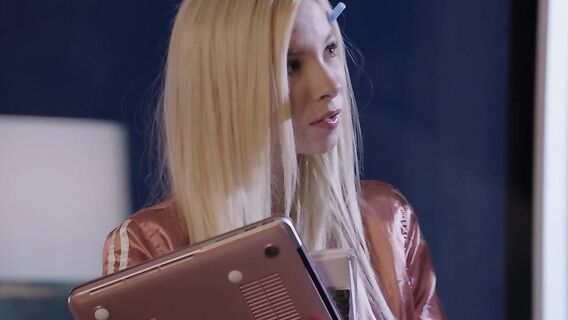 Поступив учиться, молоденькая девушка за дополнительные деньги подрабатывает у своего соседа, о котором начинает тайно фантазировать. В один из дней она обнаруживает, что его жена ушла, оставив его одного. После того, как он говорит ей, что ее услуги сегодня не требуются, она готова уйти - но прежде, чем она это сделает, у него есть другая работа для нее. Он целует ее в губы, ставит перед собой на колени и начинает давать в рот. Её минет такой сладкий, что у мужика быстро поднимается член. Он укладывает худышку на кухонный стул и приятно проникает в сочное молодое лоно. Вынимает, направляет пенис в рот и подруга опять отсасывает. И, когда возвращается в первую позу, член любовника раздвигает булочки и по соседски проникает в девственное очко. Меняется местами и жестко дрючит в жопу снизу, похлопывая яйцами по маленькой попке. Ставит раком на диване и, после серии анальных вторжений, помогает насадить очко сверху. Держит за булки и помогает анусу двигаться на члене. В конце секса достаёт член, когда подкатывает сперма, и всю до капельки отправляет блондинке на язык.