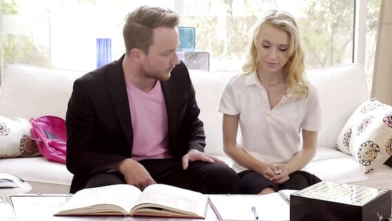Кристи поняла, что ее ждет наказание за невыполнение домашнего задания. Ее наставник опять недоволен ее работой и поэтому он укладывает телочку к себе на колени, чтобы отшлепать ее по упругой заднице. Мужик был приятно удивлен, когда понял, что телочка кайфует от каждого шлепка и решил продолжить наказание. Теперь девка вынуждена опуститься на колени, чтобы отсосать его мощный ствол. Возбудив самца минетом, Кристи раздевается и мечтает о том, чтобы он наказал ее жарким сексом. Самец грубо трахает цыпочку, а та кайфует от страстного проникновения и нежно стонет. Кончив, развратница вновь берет в ротик член учителя, чтобы помочь ему завершить начатое и получает липкую сперму на лицо.
