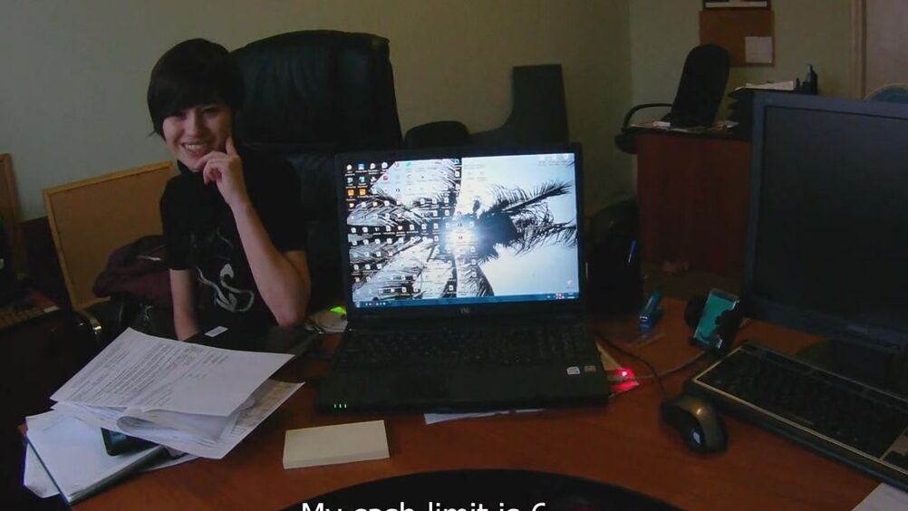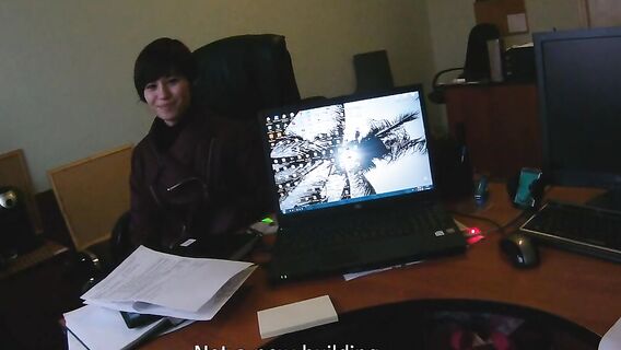 Как только в офисе появилась эта симпатичная телочка, парень тут же начал флиртовать с этой худой русской брюнеткой. Телка пришла сюда по делам, желая купить себе квартиру, но после откровенного разговора с самцом и сама не поняла, как уже начала сосать его мощный член и получать от этого удовольствие. После отсоса худая девка с маленькими сиськами наклонилась поудобнее, чтобы парень смог отыметь ее в сочную письку, а потом помочь оформить выгодную сделку. Они жарко трахались в офисе, и телочка старалась стонать потише, чтобы люди в других кабинетах не услышали их. Как только девица кончила, парень слил сперму ей на лицо, чтобы она могла насладиться густой жидкостью.