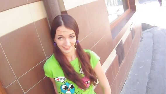 Парень на улице пытался уговорить девушек за деньги показать ему сиськи, но все отказывали. Только одна милашка попалась на его удочку и даже отправилась к нему в гости, прекрасно понимая, что этому парню нужно от нее. Оказавшись дома у парня, девушка совершенно не стеснялась и не сопротивлялась, когда он начал ее лапать. Возбудив друг друга, парочка удобно устроилась на диване. Секс с худой брюнеткой на скрытую камеру был чувственным и жарким, девушка явно получала удовольствие от проникновения. Парень с наслаждением трахал ее в письку от первого лица и в конце слил сперму на маленькую грудь.