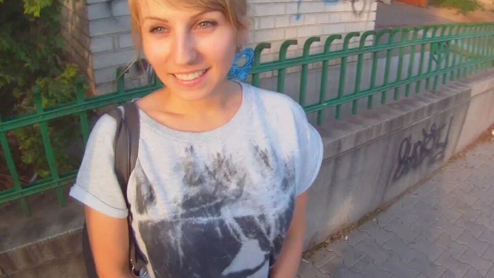 Молодая блондинка познакомилась с парнем на улице и согласилась уединиться с ним на балконе его дома. Она решила попробовать секс с незнакомцем, совершенно забыв о том, что у нее есть бойфренд. Похотливая телочка позволила незнакомцу раздеть себя, потрогать свои упругие дойки, а потом с наслаждением принялась сосать его горячий пенис, опустившись на колени. Девушка трахалась с симпатичным парнем не подозревая, что их секс он снимает на скрытую камеру в шпионских очках. Девка просто стонала от кайфа и наслаждалась жарким проникновением. Отымев блонду, хитрый парень облил ее сиськи и живот спермой.