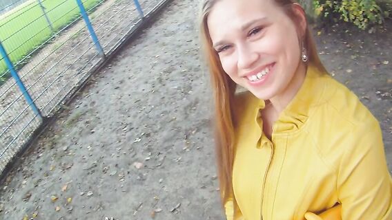 Заметив симпатичную молодую девушку у футбольного поля, хитрый парень в шпионских очках решил с ней познакомиться поближе. Этот похотливый самец представился бывшим футболистом, и телочка на это повелась, согласившись с ним на небольшую прогулку. Он привел ее на стройплощадку и там смог соблазнить на секс. Шатенка оказалась той еще шлюшкой и с удовольствием засветила перед ним свои аккуратные сиськи. Увидев перед собой мощный член парня, она, опустившись на колени взяла его в ротик. После жаркого отсоса телку ждал не менее жаркий секс на стройплощадке нового стадиона. Она принимала стояк в пизду и стонала от кайфа, а в конце полакомилась спермой.