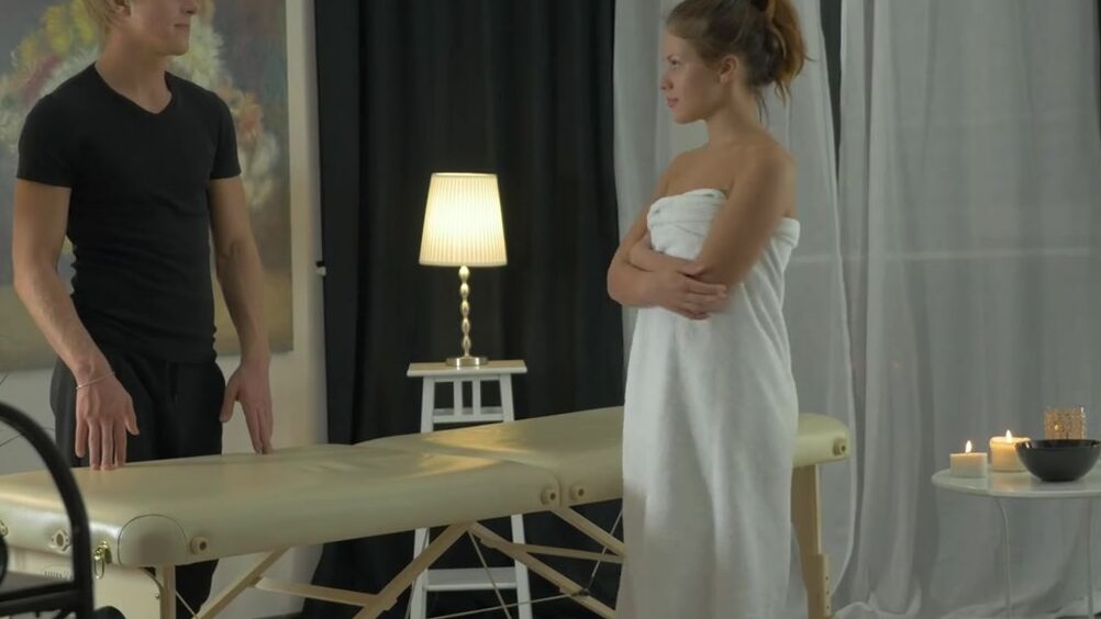 Русская девушка решает сегодня незабываемо провести свой день. Красивая шатенка вызвала эротического массажиста, и он ее не разочаровал. Парень с сильными руками наносил масло на упругое тело голой красотки и нежно массировал ее. От чувственных прикосновений этого профессионального массажиста русская красотка с каждой секундой возбуждалась все сильнее. Когда он начал дотрагиваться до ее бритой киски, то цыпочка разгорячилась окончательно. Почувствовав это, массажист предложил телке член для отсоса, а после поставил ее раком на массажном столе. Он побаловал киску красотки оральными ласками, а потом трахнул ее в тугую дырочку. В конце он кончил на лицо цыпочке.