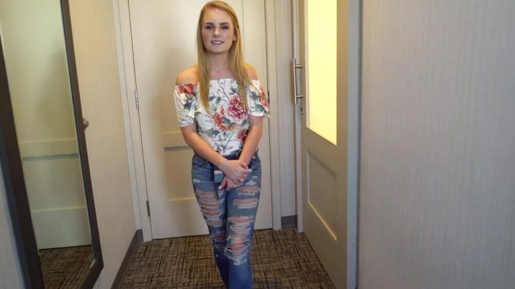 Уже на кастинге 18-летняя милашка поняла, что никаких съемок музыкального клипа не будет и этот мужик просто хочет ее трахнуть. Конечно, секс на камеру он ей предлагал не просто так, а за деньги. Поэтому, немного подумав, блондинка согласилась и позволила себя трахнуть и даже кончить в рот. Раздевшись, она с аппетитом сосала мощный ствол мужика и даже постанывала от кайфа. После оральных ласк она приняла большой член в свою сочную пилотку и начала стонать еще громче. Этой милашке с аккуратными сиськами явно нравилось, как этот чувак классно жарит ее пилотку в разных позах и кончает в ротик.
