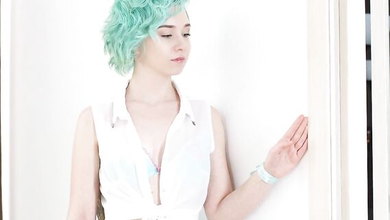 Очень необычная внешность голубоволосой девушки показывает её неуёмный характер. Сексуальная и заводная она просто мастерски умеет соблазнить мужчину, используя своё красивое, стройное тело. Парень просто не может устоять перед ней, начиная с нежных поцелуев их прелюдии, становятся всё более возбуждающими. Пока девушка занята отсасыванием члена, парень дотягивается до её маленькой попки и шлёпает её. Сняв всю одежду, девушка встаёт раком на кресле и получает комбо из куни и анилингуса. Оставаясь всё в той же позе она принимает в себя член, но быстро пара меняет позу и уже юная шалунья скачет сверху в позе наездницы. Хорошо растянув пиздёнку, парень укладывает девушку на спину, она задирает ноги и начинается анальный секс. Глубоко в тугую попку проникает возбужденный влажный член. И снова наездница только уже её попка одевается на фаллос. Шикарный мж заканчивается обильным камшотом на язык малышки, которая жадно слизывает с губ сперму, довольно улыбаясь парню.