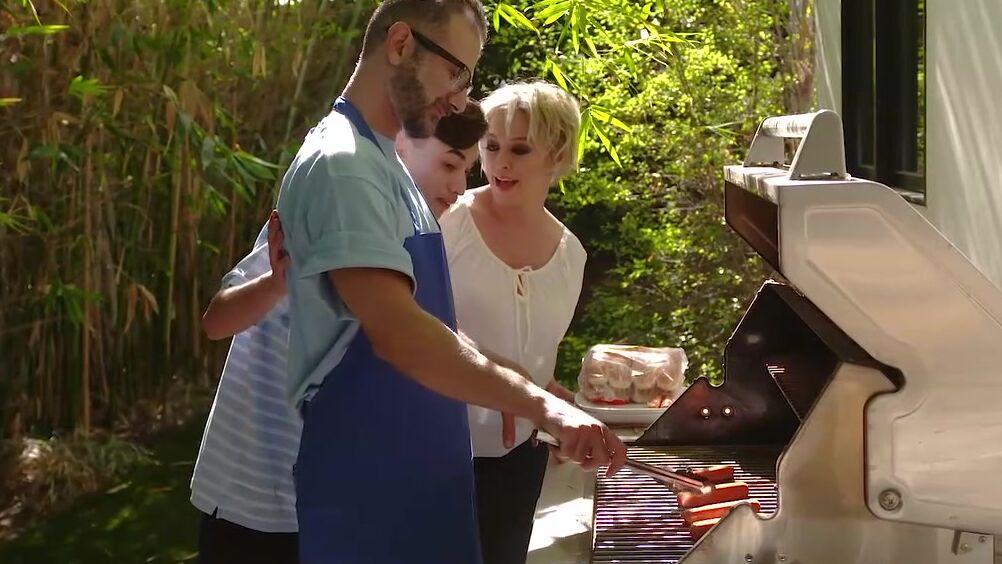 Когда мама с папой сталкиваются с невозможностью зачать ребенка, к ним приходит неожиданное решение проблемы. Их пасынок вполне может им помочь и это становится настоящим спасением. Отец первый идет на разговор с парнем подростком и просит помочь зачать ребенка, а потом и мама включается в обсуждение проблемы, и он дает свое согласие. Блондинка с короткой стрижкой и большими натуральными сиськами быстро берется за дело и сразу же начинает раздевать парня. Она встает перед ним на колени и делает, минет, поднимая крепкий большой флажок в боевое положение. И как то сама не замечает, как увлекается и уже не просто стремится к цели забеременеть, а полноценно наслаждается вылизыванием яичек и глубоким заглатыванием молодого члена. Закончив, она задирает подол платья, и встает раком у кровати, чтобы парень смог разогреть её пизду кунилингусом. Она стонет от куни и наслаждается его умением лизать. Скоро член залетает в неё и начинает долбить мамочку в позе собаки. Парнишка хорошенько обрабатывает женщину, придерживая за талию и не сбавляя оборотов. После позы раком, мачеха снимает с себя всю одежду и дает парню насладиться своей шикарной грудью и снова прикладывается губами к члену. А потом запрыгивает верхом и дает парню входить снизу, правда не очень долго, потому что парень уже на пределе и чтобы закончить, он переворачивает её на спину и жарит в миссионерской позе, кончая в её гладкую киску, даря ей желанную сперму.