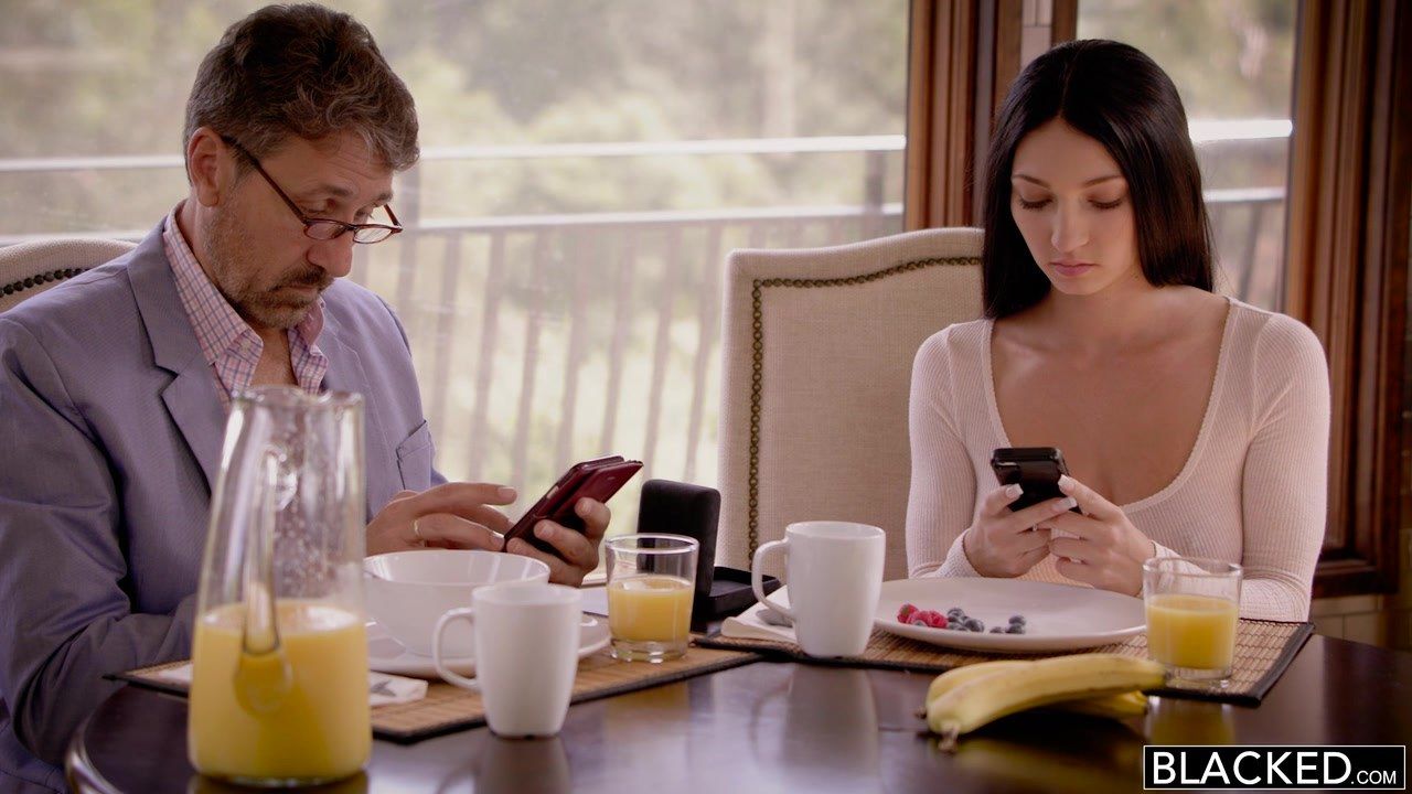 Молоденькая девушка не просто так живет с богатым мужиком. Ее полностью устраивают его деньги и обеспечение, которое она получает. Но единственной проблемой в её семейной жизни становится секс. Зрелый муж не так часто трахается с красивой брюнеткой, как той хотелось бы. Поэтому девушка начинает вести активную переписку чернокожим тренером с большим членом. А потом назначает свидание, когда мужа нет дома. Запустив негру руку в ширинку, деваха нащупывает там его большой член. Она присаживается и с наслаждением сосёт. Раздевает негра наголо, кладёт на диван и продолжает заниматься членом, надрачивая его хозяйство обеими руками и беря головку члена себе за щеку. Даже облизывает черные яйца и изменяет с негром, лёжа под ним с раскинутой широко в стороны рогаткой. Сама предлагает поменяться местами и негр трахает чужую жену в позе наездницы. Вафлит и разворачивает на члене сиськами к лицу. Дальше девушка готовится подставить свою дырку в позе раком и виляет булками. Даёт прокатить на члене, держа на весу. Скачет на члене негра верхом, и вся его сперма остаётся у девушки внутри.