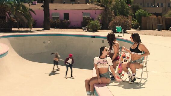 Девушка сильно расстроена расставанием со своим парнем, но её верные подружки рядом. Они проводят остаток летних каникул вместе, и она предлагает пойти втроём в скейт парк. Именно там девушки знакомятся с симпатичными неграми и подружки вместе решаются на межрассовый групповой трах. Красотка выбирает момент, когда брюнетки начинают отсасывать, присаживается рядом у крайнего члена и подключается к глубокому минету. Облизывает негру яйца и помогает подружкам стать в позу раком, чтобы негры начали их натягивать сзади. А сама вытягивает длинный непослушный язычок и начинает лизать им анусы. Но потом негры ставят всех трёх девушек в позу раком рядом и начинают трахать их дырочки по очереди, вынимая из одной пилотки и засаживая в следующую. А сучки переглядываются с довольными улыбками на лице и целуются между собой, как лесбиянки. Обкатывают большие члены в позе наездниц, дают потрахать себя сверху, и дружно принимают сперму из членов на лицо.